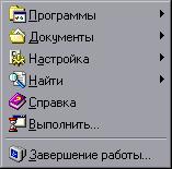 (кнопка "Пуск") необходимые команды и программы выбираются из выпадающих